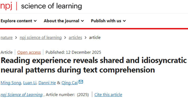 蔡清团队在npj Science of Learning发文揭示阅读经验和阅读过程中神经活动的内在联系" data-focus-url="">