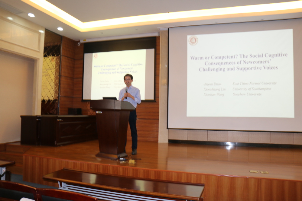 2019年10月18日,6686体育心理与认知科学学院庆祝建校68周年校庆学术报告会在中山北路校区俊秀楼223学术报告厅成功举办。本次报告会由我院紫江青年学者段锦云教授、晨晖学者郭家俊、严超副教授、姚琦副教授、汪晨波副教授、晨晖学者王弘毅主讲。段锦云、汪晨波主持。