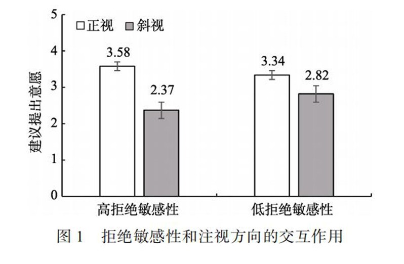 实验结果表明,当建议寻求者的注视方向为正视时,能够促进建议者提出建议的意愿,建议者感知到的角色期待起到了中介作用。当建议者的拒绝敏感性高时,寻求者的注视方向对建议提出意愿有显著影响,当建议者的拒绝敏感性低时,这种影响减弱或消失。此外,拒绝敏感性也调节了角色期待感知的中介效应。