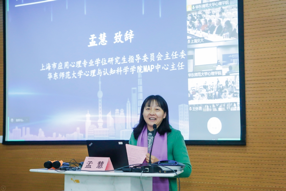 孟慧在发言中,对实践技能比赛的总体筹备组织工作进了介绍,并指出,上海市应用心理专业学位研究生教指委自2019年成立以来,一直着力于促进上海市MAP教育和培养的工作,实践技能比赛是其中非常重要的,促进学生能力和专业成长的举措。上海市教指委将以本次论坛为契机,与长三角地区各培养院校一起,和衷共济,携手并进,为培养符合社会需求的应用型人才贡献力量。
