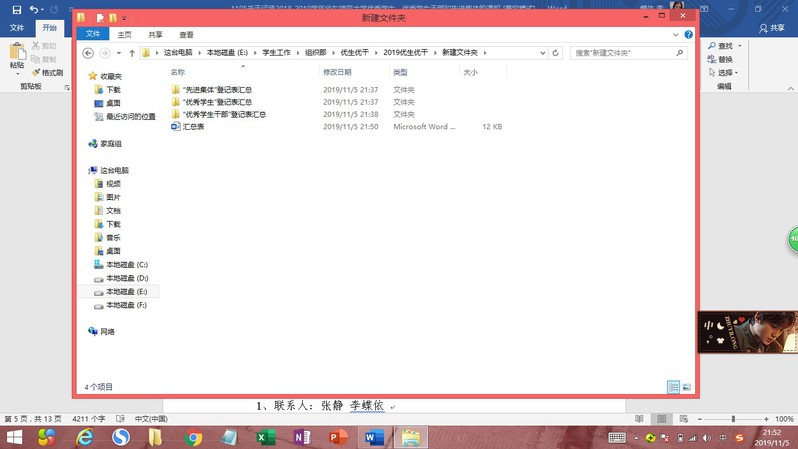 各单位负责人将本单位《汇总表》、《“优秀学生”登记表》、《“优秀学生干部”登记表》、《“先进集体”登记表》汇总,以压缩文件的形式于2019年11月27日前发至邮箱:twzzb@mail.ecnu.edu.cn,压缩文件命名为院系+优生优干、先进集体申报,压缩包内容格式如下: