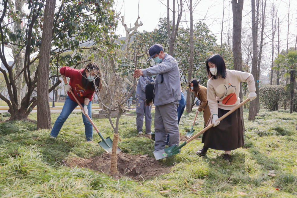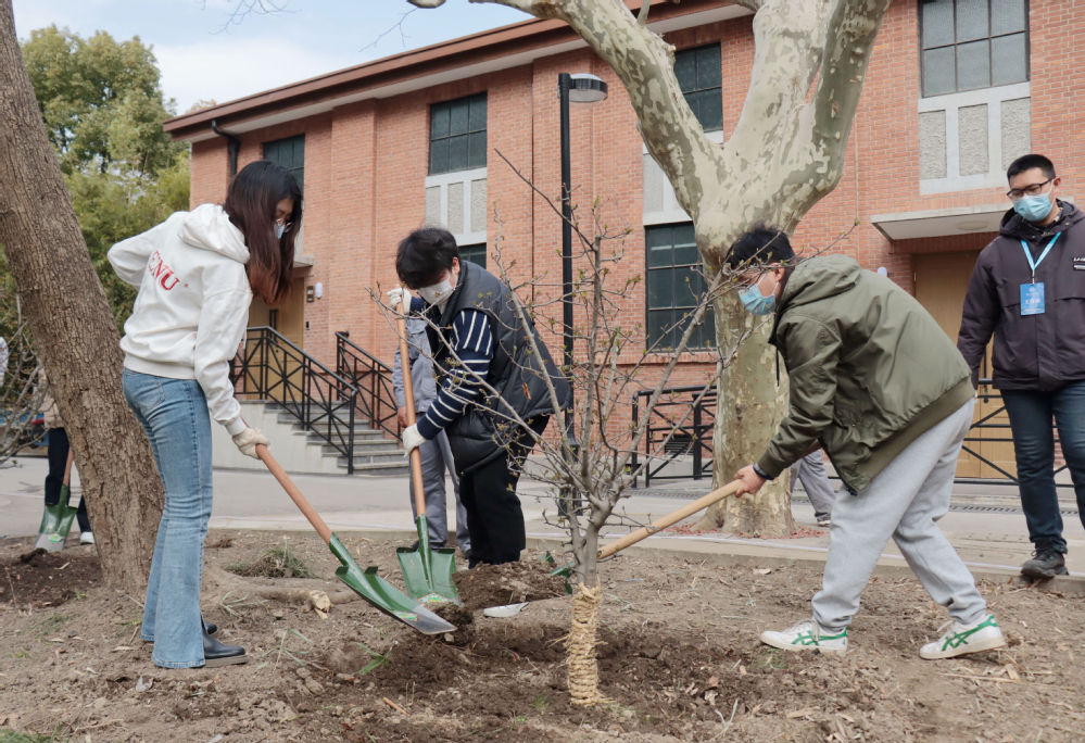 孟春之月,盛德在木。恰逢全国第44个植树节,为增强生态文明和环境保护意识,积极开展劳动教育实践,3月11日上午,后勤保障部联合心理与认知科学学院,在继续做好疫情防控的同时,组织我院学术型研究生党支部20余名学生党员,在普陀校区银杏林开展义务植树活动。