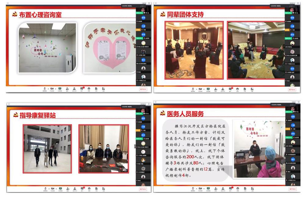 基础行政认知教工党支部,李世佳:“聆听了杨道良主任的武汉抗疫一线心理干预经历分享,深受感动。感谢杨主任的真情分享,感谢让我们更深刻体会到这份人间真情。在整个分享过程中,我感受最深的不仅仅是医护人员的坚强乐观和与患者们的生死与共,更是杨主任由衷的对祖国和对党的感激。这是一份最真挚的感激,也是发自内心的作为一名中国人的骄傲。我们的党是一个把人民放在心中最高位置的执政党,我们的国家是一个坚持以人为本的国家,总是时刻心系人民的安危冷暖。经历了这场灾难后,我坚信我们民族一定会在灾难中奋起,在哀思中前行,共同建设一个更加强大的国家。”