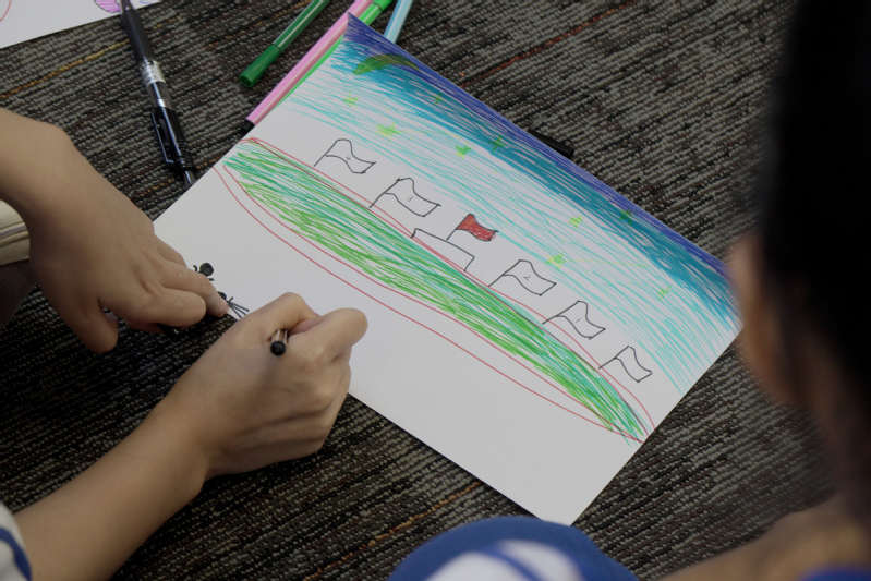 第二天上午,同学们通过绘画的方式,分享了昨夜一同欣赏的华迈星空。并在蒙眼的条件下,和队员一起完成“诺曼底登陆”。
