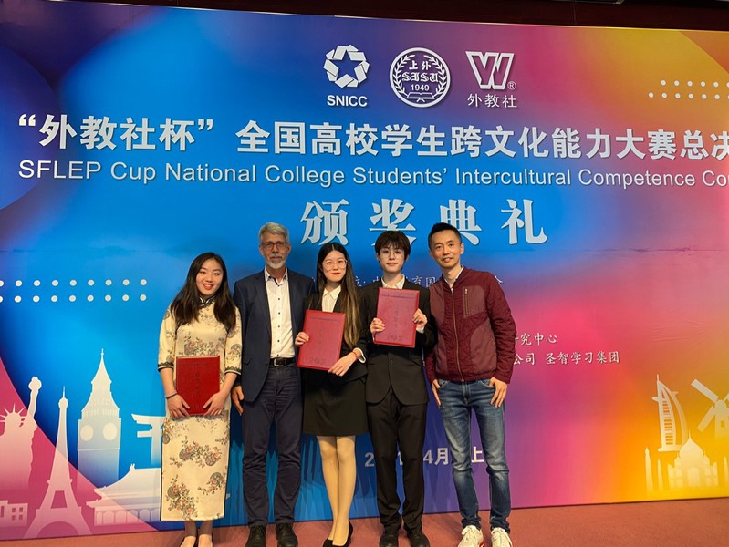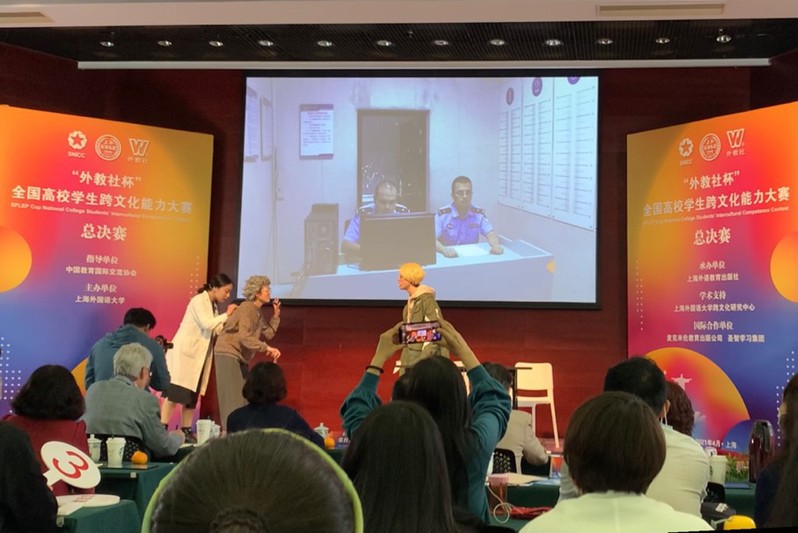 本次“外教社杯全国高校学生跨文化能力大赛由中国教育国际交流协会指导,上海外国语大学主办,上海外语教育出版社承办,上海外国语大学跨文化研究中心提供学术支持。经过校园选拔赛、省市选拔赛,最终来自全国各地的20支队伍进入全国赛决赛。全国赛决赛包括案例展示分析、回答评委问题以及解读跨文化相关名言,总决赛包括文化知识问答、情景评述和问答以及中国故事讲述。在强手如林、竞争异常激烈的总决赛中,在跨文化语境下,我院学生表现出极强的分析与解决问题的能力,最终获得了优异成绩。