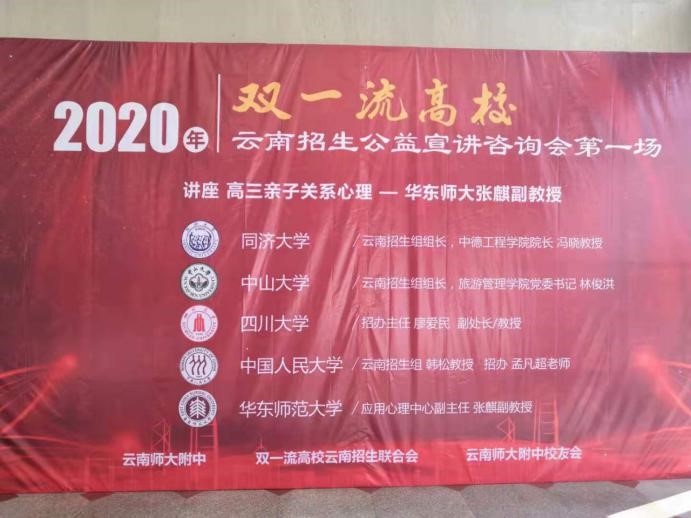 2019年12月21—22日,我院张麒副教授应“双一流高校云南招生联合会”邀请,代表6686体育招生办公室赴云南昆明参加“2020年双一流高校云南招生公益宣讲咨询会”,并为家长做题为《高三亲子关系》的心理辅导讲座。