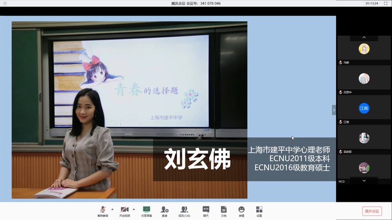 刘玄佛是2015届本科毕业生,目前在上海建平中学担任心理健康教师,她介绍了作为一名中学心理健康教师的岗位职责、该岗位要求的能力和特质、工作挑战以及职业生涯的发展趋势。她对工作的投入,让大家一同感受到作为学生成长路上的见证者的幸福。