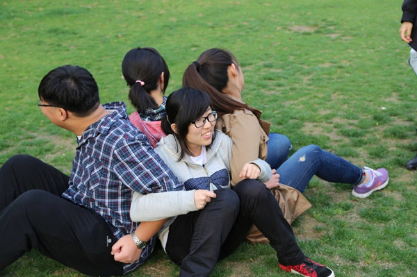 在一同赏完樱花后,团校活动在一片大草坪上正式开始。组织部同学们为团校精心策划了“坐地起身”和游戏。