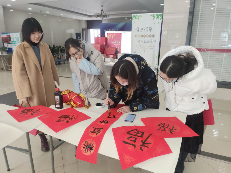 俊秀楼也准备了喜气洋洋的春联,同学们纷纷拿起毛笔,写上新春的祝福。许多同学表示要带上写好的春联贴到实验室或者宿舍,充满了新年的仪式感。
