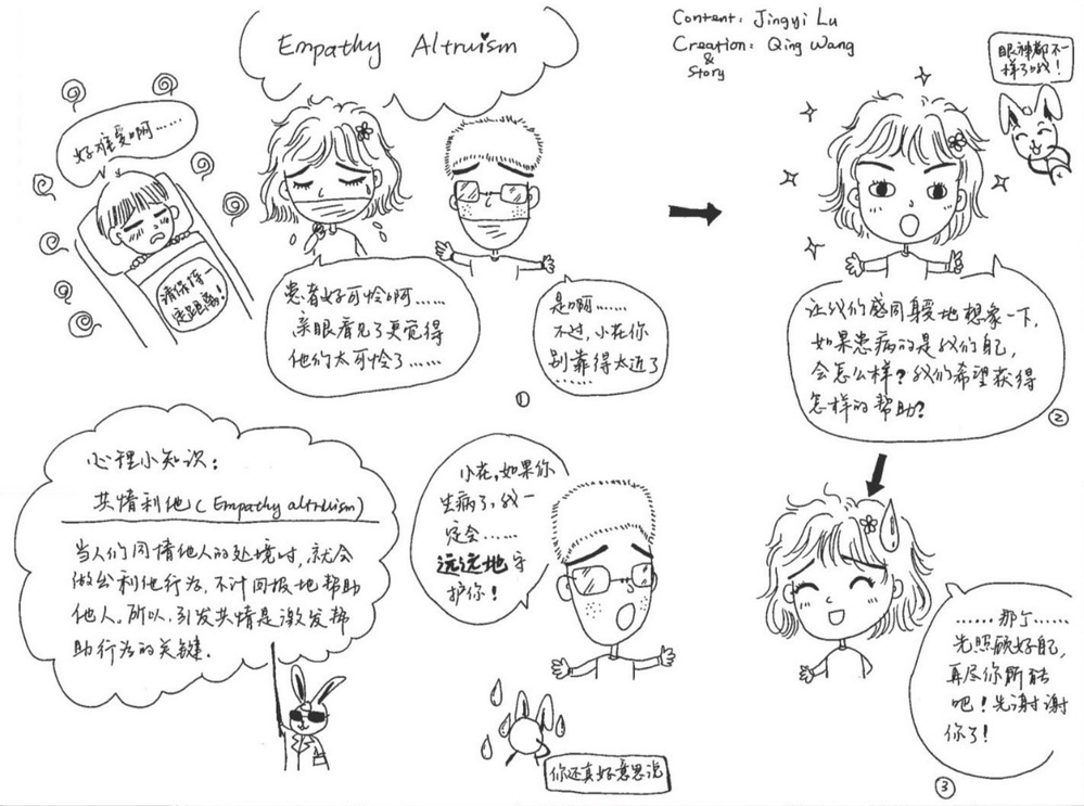 当人们同情他人的处境时,就会做出纯粹主义的利他行为,不计回报地帮助他人。例如,如果人们能感同身受地体会“新冠肺炎”患者的痛苦,就会无私地以各种形式帮助患者。所以,引发共情是激发帮助行为的关键。