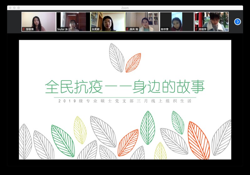 疫情面前,学院学生党员们勇于担当,纷纷为疫情防控工作做出自己的贡献,学院多个学生党支部组织党员分享青春战疫故事。本科生党支部开展“用青春热血,践行初心使命”线上主题党日活动,学生发展对象、入党积极分子一同参与党日活动。支部内李婕、王云汐、吴怡雯、牛露潼等学生党员分别讲述了他们参与防疫心理科普、心理援助网络平台、社区防疫、抗疫歌曲制作等工作的经历和感想。支部还连线海外交流学习的党员,共同交流国内外疫情防控的做法,通过交流对比,中国的国家制度优势和强大的人民力量让党员们骄傲而自豪,从而更加坚定“四个自信”,增强“四个意识”。2019级专硕党支部开展“全民抗疫——身边的故事”线上主题党日活动,党员同学们分享了疫情期间发生在自己身边的感人事迹,包括农村基层工作者、基层民警、外卖小哥的故事等。2018级专硕党支部开展“守初心,担使命,抗疫情”线上主题党日活动,参与学院“新冠疫情心理援助”网络平台工作的学生党员分享了工作体会和感想,提出了作为心理人,作为一名党员,在国家大难之际应有的担当。2017级学硕党支部的夏榕同学在支部主题党日活动中介绍了她在疫情期间为小海豚的多动症和自闭症小朋友们在线上进行注意力训练和运动训练的故事。学生党员们对青春战疫故事的分享,激发了党员们向身边榜样学习的决心和动力,坚定了自己作为一名党员的责任与担当,增强了大家对战胜疫情,取得成功的信念和力量。