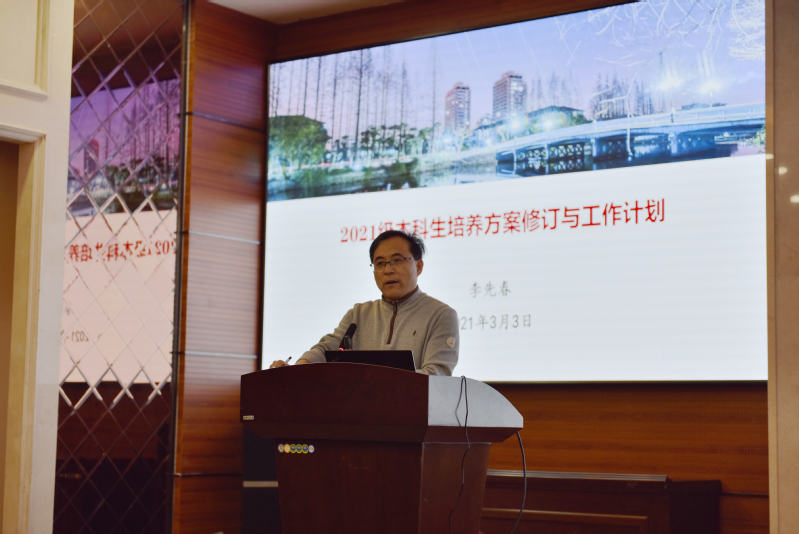 李先春首先向全体参会教师介绍了此次培养方案修订的背景及必要性,从分类指导、学分要求、培养体系、专业教育、学分分布、课程改革、实践体系等方面对培养方案的修订原则做了详细说明,并列出此次修订的工作计划,明确了工作推进的时间线。