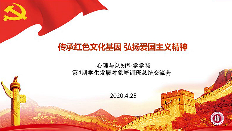 4月25日下午,心理与认知科学学院开展第4期学生发展对象培训班线上总结交流会。会议以“传承红色文化基因,弘扬爱国主义精神”为主题,12位学生发展对象对家乡的红色文化、地域精神以及此次抗疫中涌现的先进事迹进行了集中分享,交流了学习感想。心理与认知科学学院关工委成员陈国鹏老师(退休党支部书记)、沈烈敏老师(特邀党建组织员)出席指导,心理与认知科学学院专职组织员赵菲菲老师主持会议。