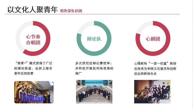 院团委坚持发掘并打造特色品牌学生组织,创造出一系列站得住、叫得响、传得开、留得下的精神文化活动与产品。心院团委着重推动学院文体活动的开展。以新生文艺汇演、毕业生晚会、十大歌手为主要阵地,搭建青春活力舞台;以校运会、新莘杯、阳光体育联赛为主体,辅以创新的活动形式,促进锻炼的积极性。学院下设10家学生社团,成为学院学生工作的新的阵地,并发展了一批有影响力的学生社团。