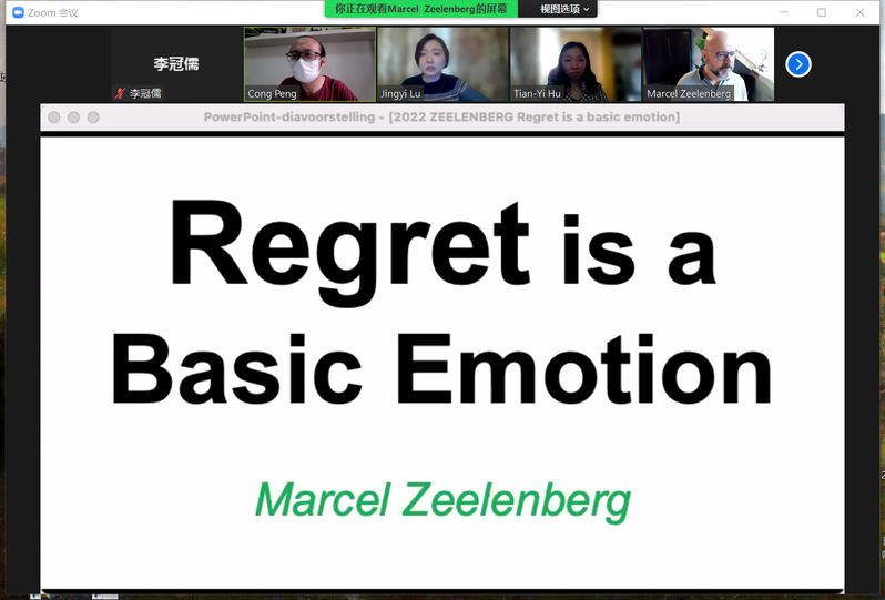 2022年5月24日,应我院邀请,荷兰蒂尔堡大学社会心理学系教授Marcel Zeelenberg通过zoom会议作了题为“Regret is a Basic emotion”的报告。本次报告由陆静怡教授主持,百余名师生参加。