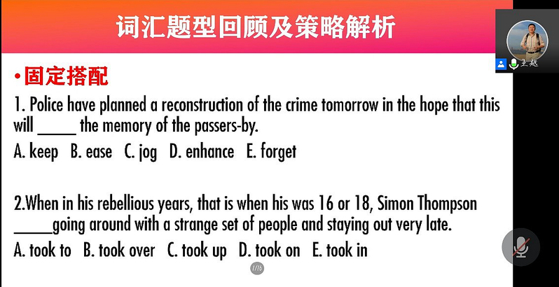 王越老师首先向大家介绍了全国大学生英语竞赛的发展现状和奖项设置。随后的两小时培训中,王老师从竞赛的题型、解题策略和考试重点、难点进行了耐心的介绍,并通过真题的讲解,指导同学们掌握有效的英语学习方法。