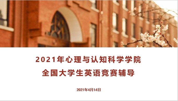 4月14日,心理与认知科学学院举办 “2021年全国大学生英语竞赛辅导线上培训”,邀请校英语学科竞赛中心主任王越为主讲人,我院共102名学生参赛。