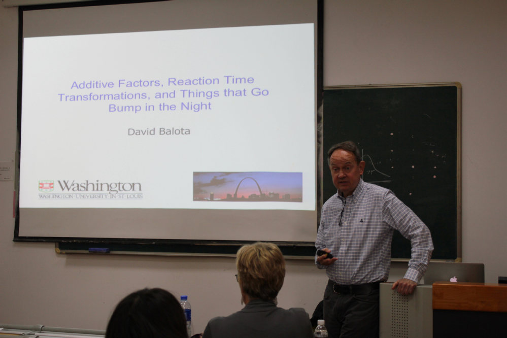 2019年4月11日下午,美国圣路易斯华盛顿大学心理与脑科学系的David A. Balota教授到访心理与认知科学学院,并在俊秀楼107室为师生做了题为“Additive Factors, Reaction Time Transformations, and Things that Go Bump in the Night”的学术报告。报告会由我院蒯曙光教授主持。