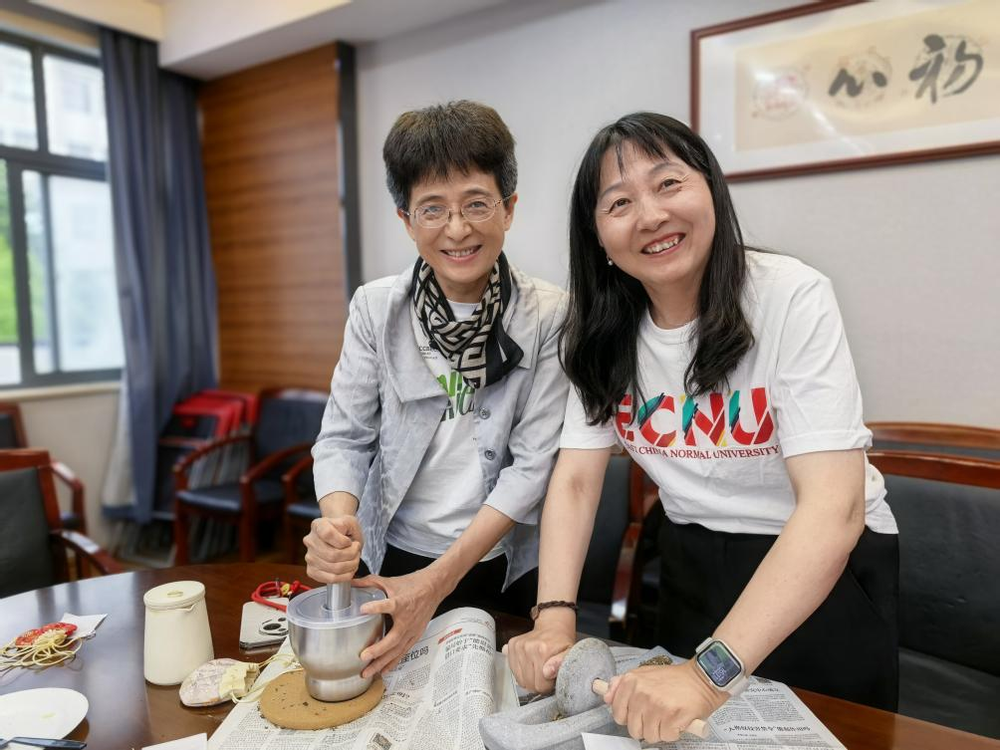活动伊始,6686体育非物质文化遗产传承与应用研究中心研究员刘艳介绍了古法香囊的起源、类型、香料的类型和功效,之后老师们观察和体味了艾叶、藿香、丁香、紫苏叶、细辛、薄荷等14味香料,并依次将它们舂和捻成了粉末,再将香料一点点装入布袋,再制成一个个精美的香囊。老师们相互交流制作心得,分享经验,欢声笑语回荡在活动现场。