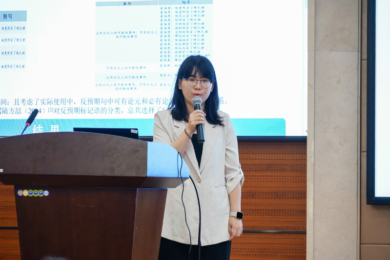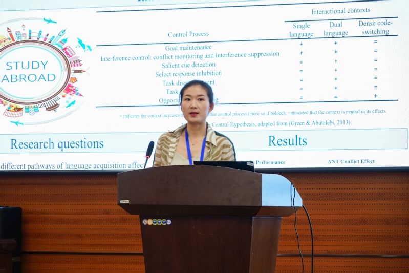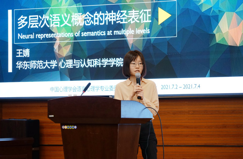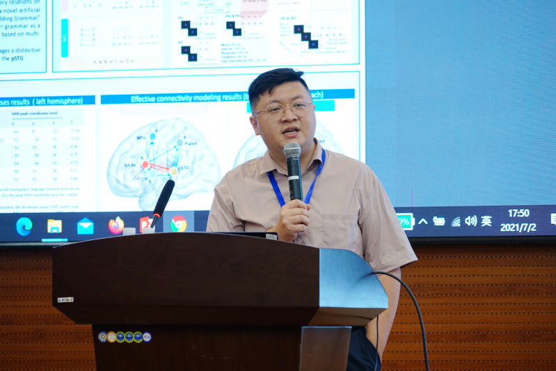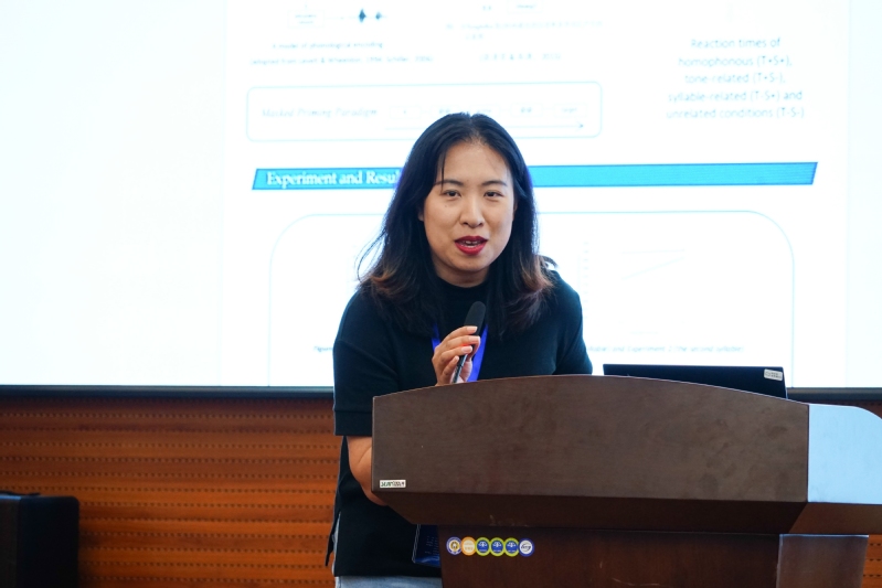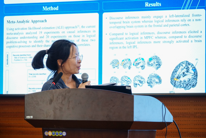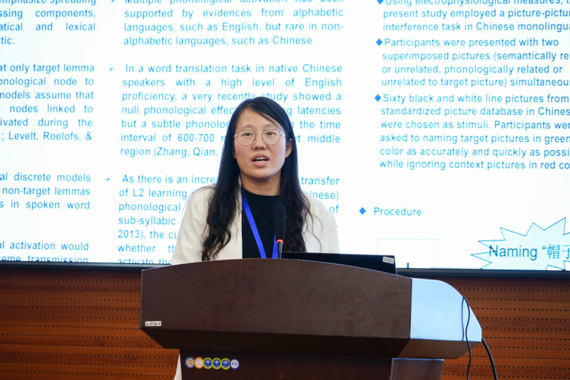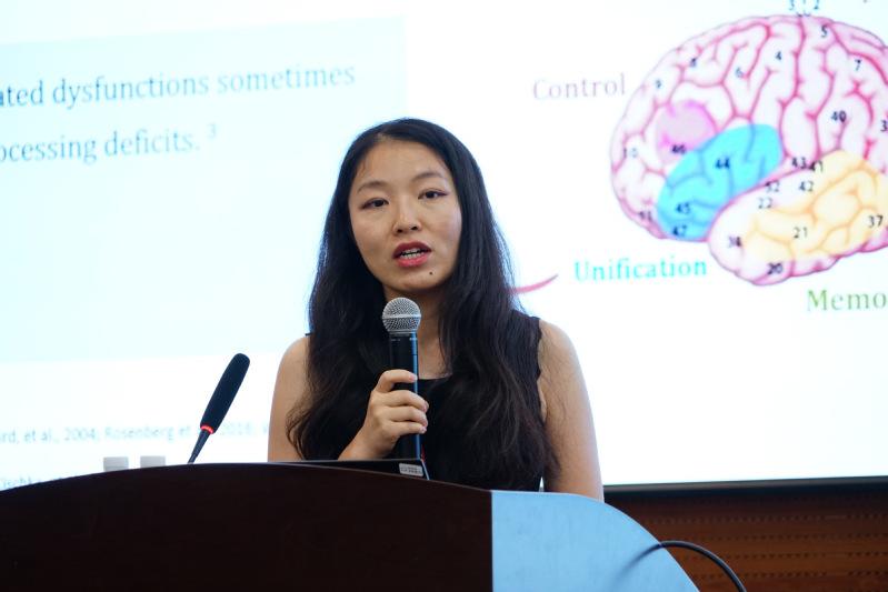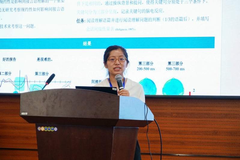 上海外国语大学语言研究院副教授谭滢滢介绍了关于多巴胺影响句子理解的语义加工过程的研究。