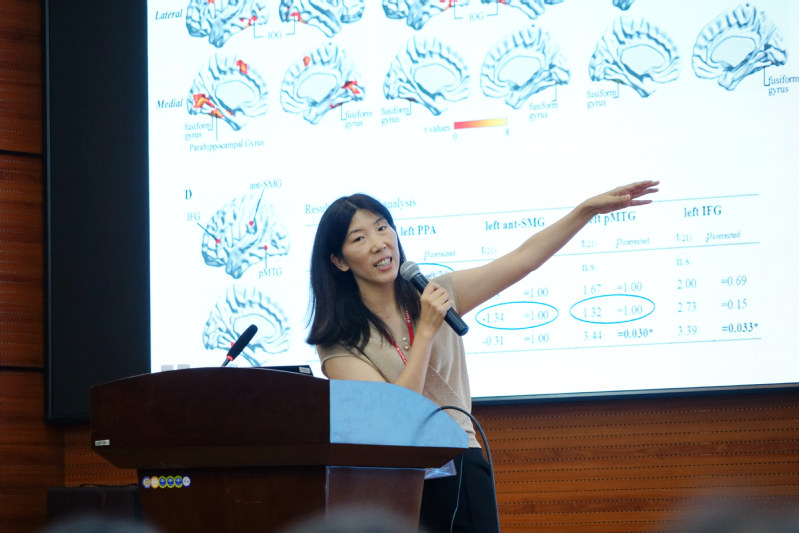 北京师范大学心理学部教授韩在柱介绍了视觉字形区域的形成原因及其在文字加工中所起到的具体作用,在“视觉形状假说”和“交互作用假说”的争议中为后者提供了重要的实验证据。