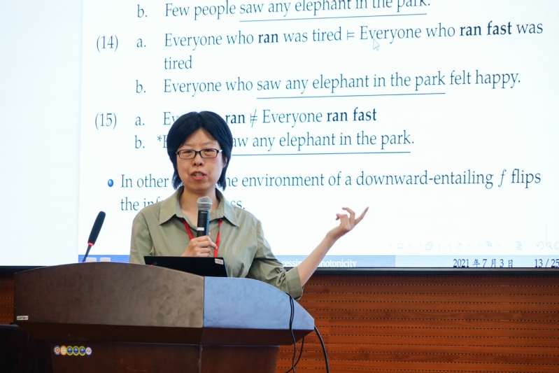 跨学科的语言机制在本次会议中得到了广泛的探讨。来自比较生物学、语言学、儿童语言发展、人工智能自然语言处理等领域的嘉宾从各自的角度分享了语言研究的最新进展和观点。上海纽约大学博士后研究员张琳敏从形式语义学和神经语言学两个方面,向大家介绍了作为基本逻辑算子的否定算子相关的语言现象的研究。