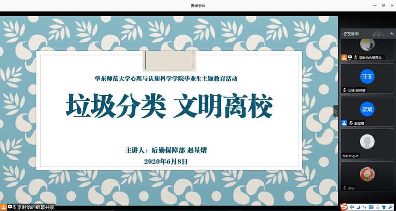2020年6月8日,心理与认知科学学院邀请后勤保障部赵星熠老师为毕业生做“垃圾分类,文明离校”主题讲座。