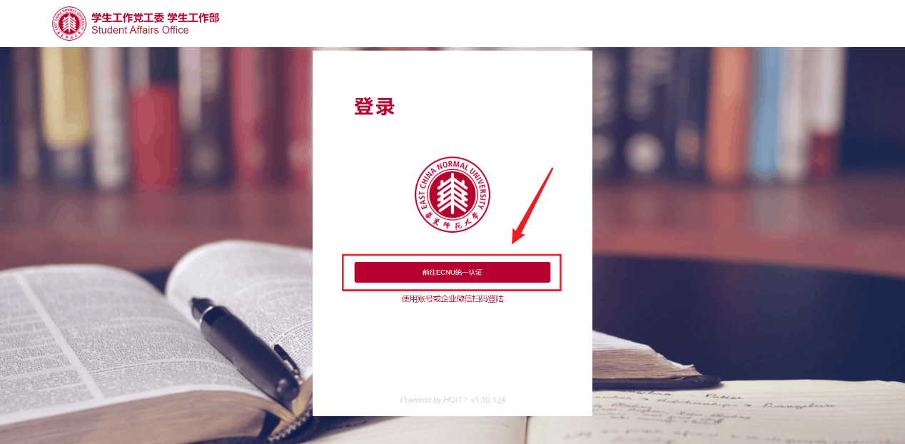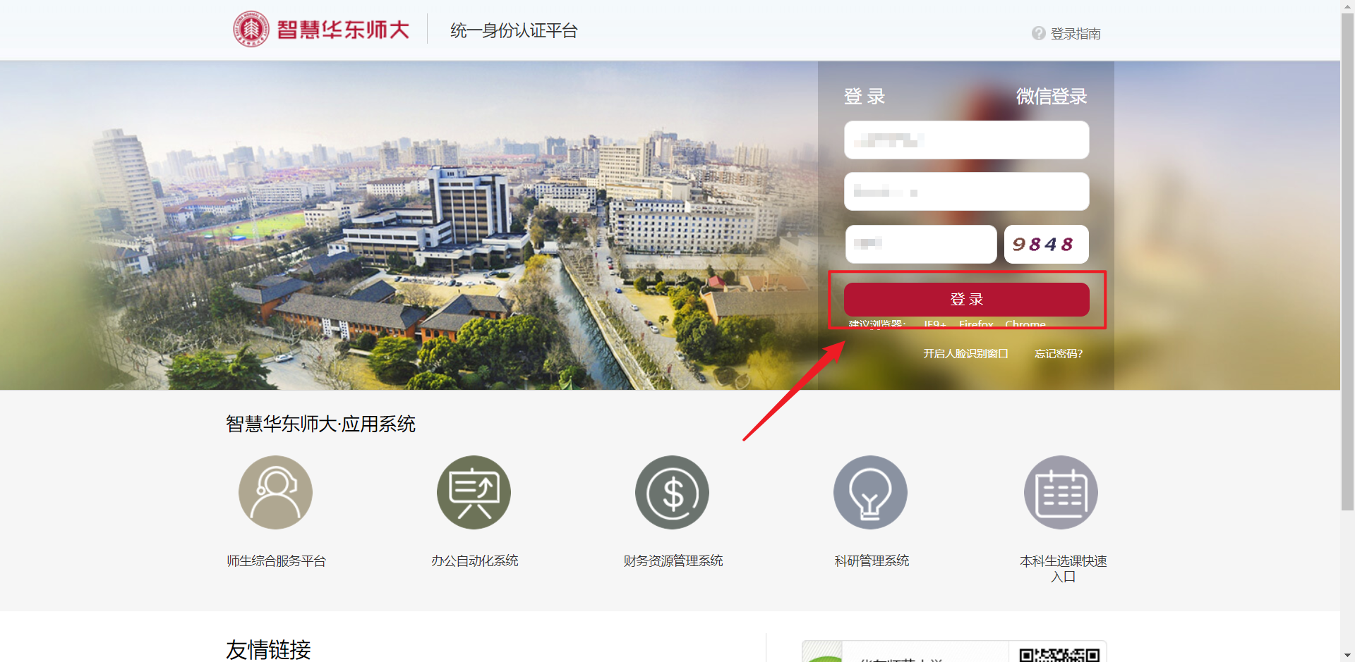点击“前往ECNU统一认证”(图1.3),填写正确的用户名、密码、验证码后,点击“登录”(图1.4),等待页面跳转至系统首页。