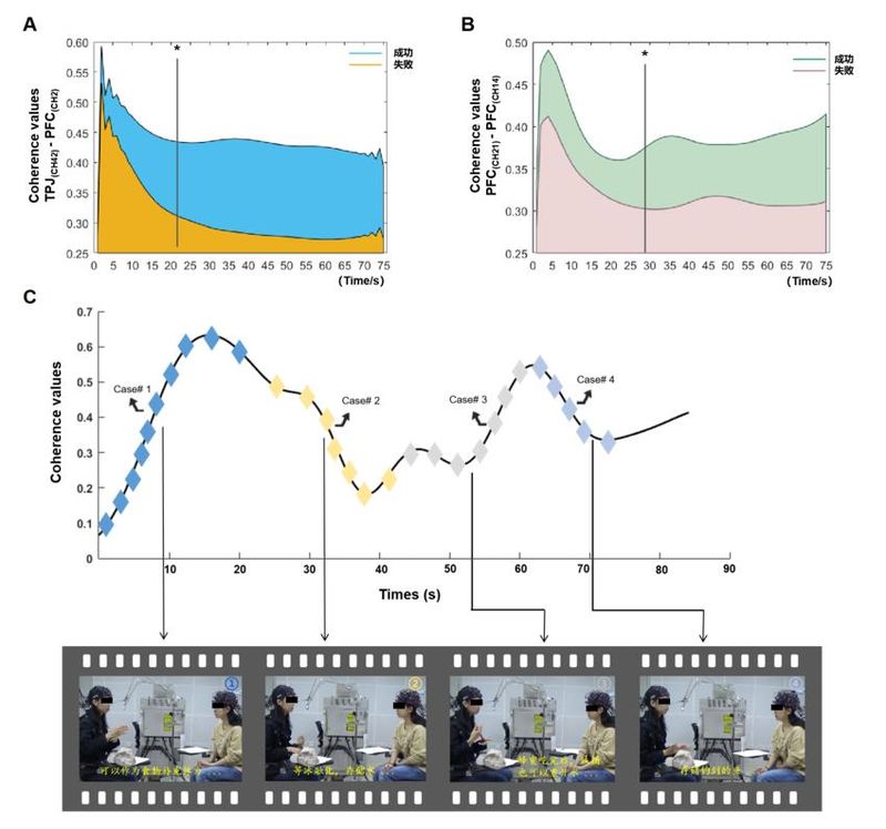 最后,时间序列动态脑-脑耦合联合视频解码分析,进一步为说服的时间进程效应提供了证据。说服任务开始后的约22s,即对应第一个论点阐明完后,脑-脑耦合就可以有效预测说服成功与否。该发现提示该时刻可能对应了自然说服沟通过程中说服生效的时刻。反应最初论点的说服力可能是激励个体态度、行为发生改变的关键一步。总之,本项研究揭示了一种创新的人际神经科学手段,以理解神经科学、心理学背后复杂和真实的人际沟通说服。