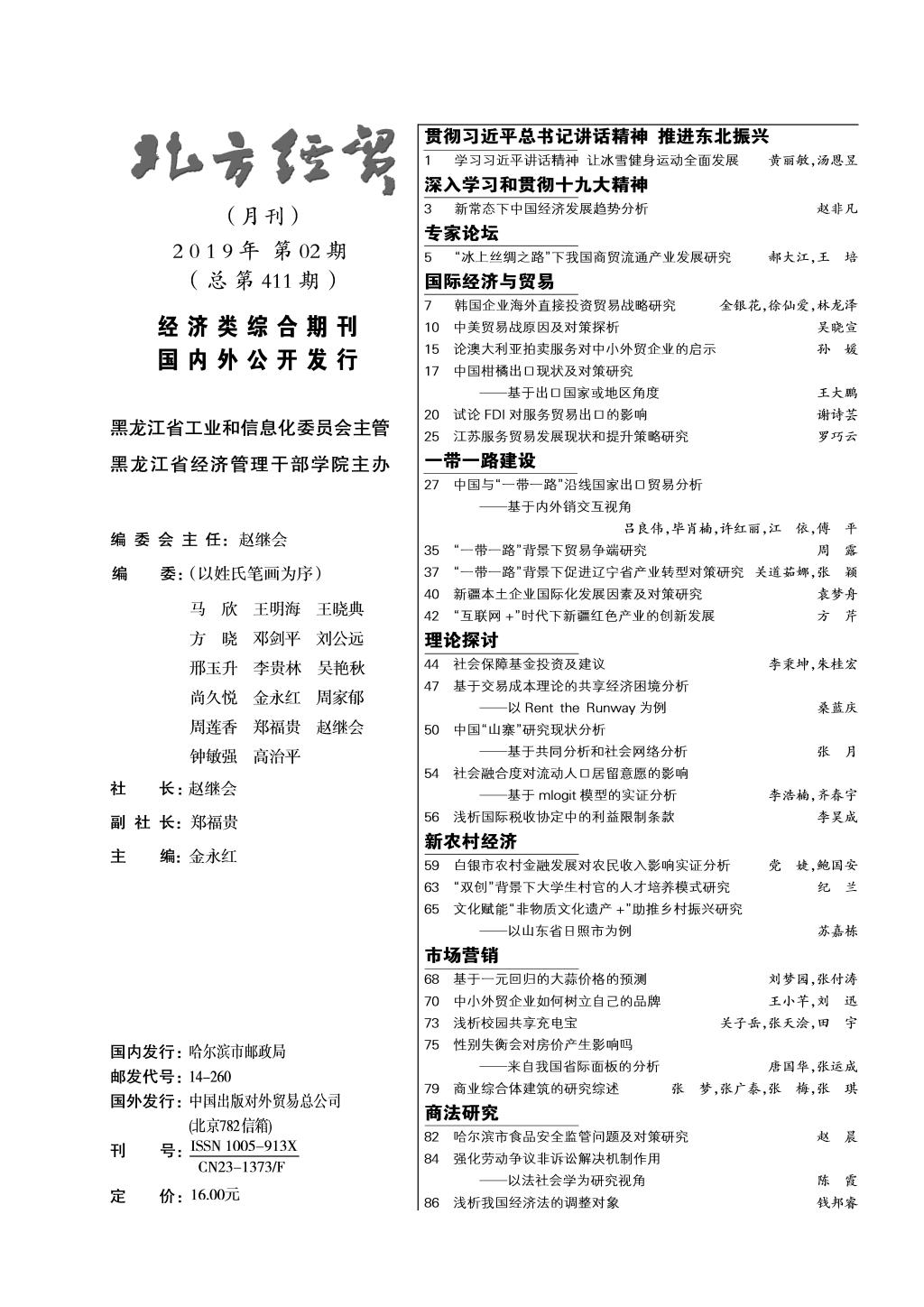 版权所有:北方经贸杂志社 地址:黑龙江省哈尔滨市南岗区学府路5号 邮编150080 电话:0451-86681276 86646778 邮箱:bfjmzzs@126.com