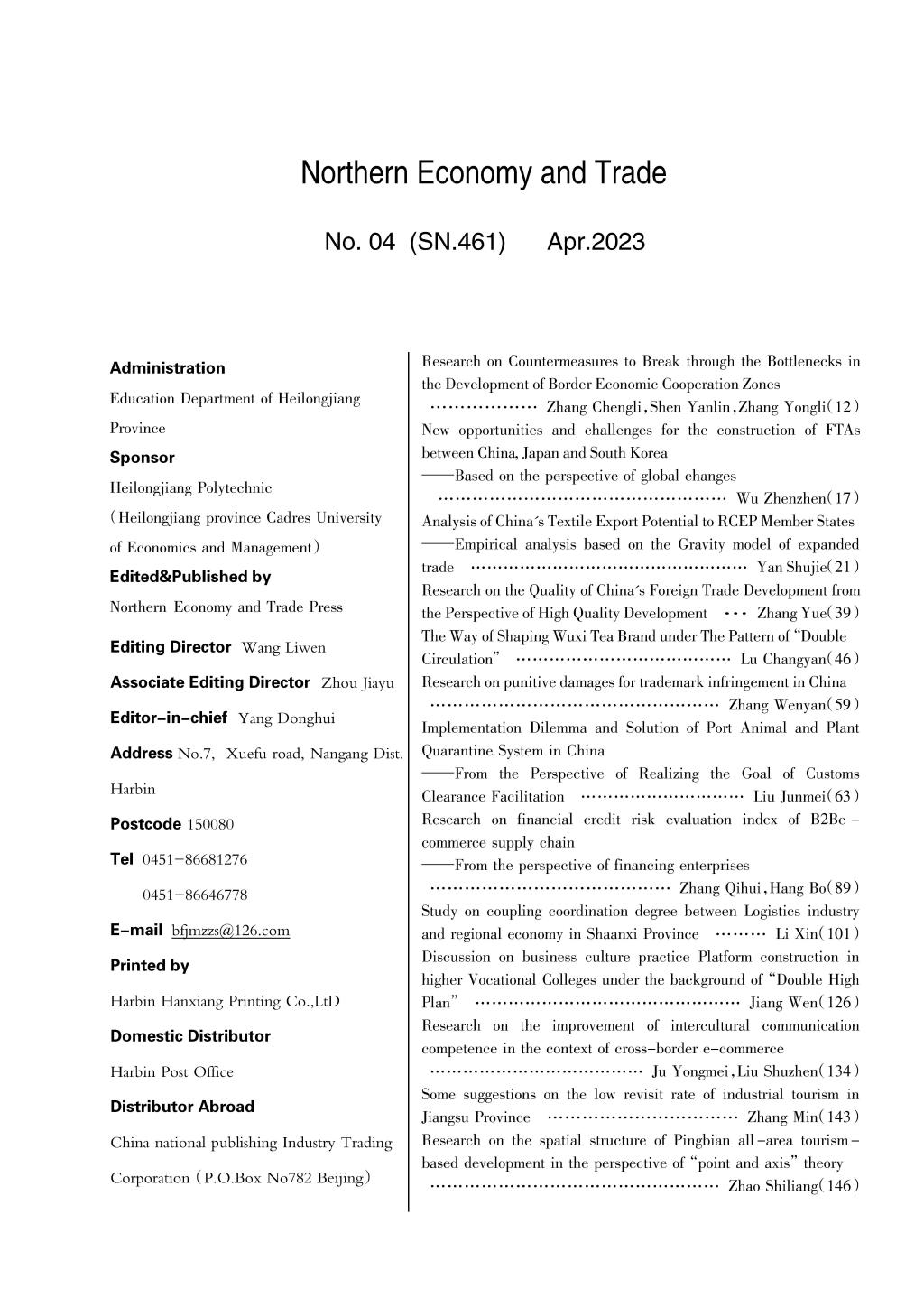 《北方经贸》2023年四月刊