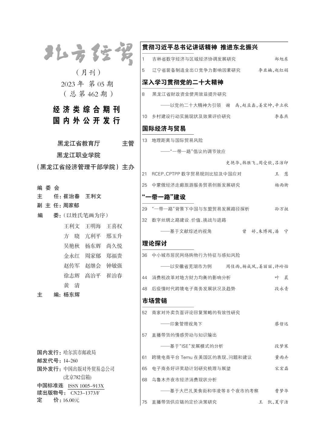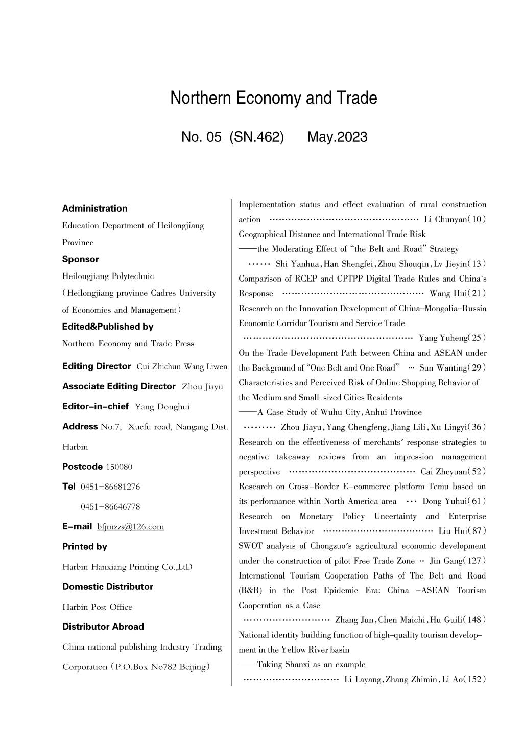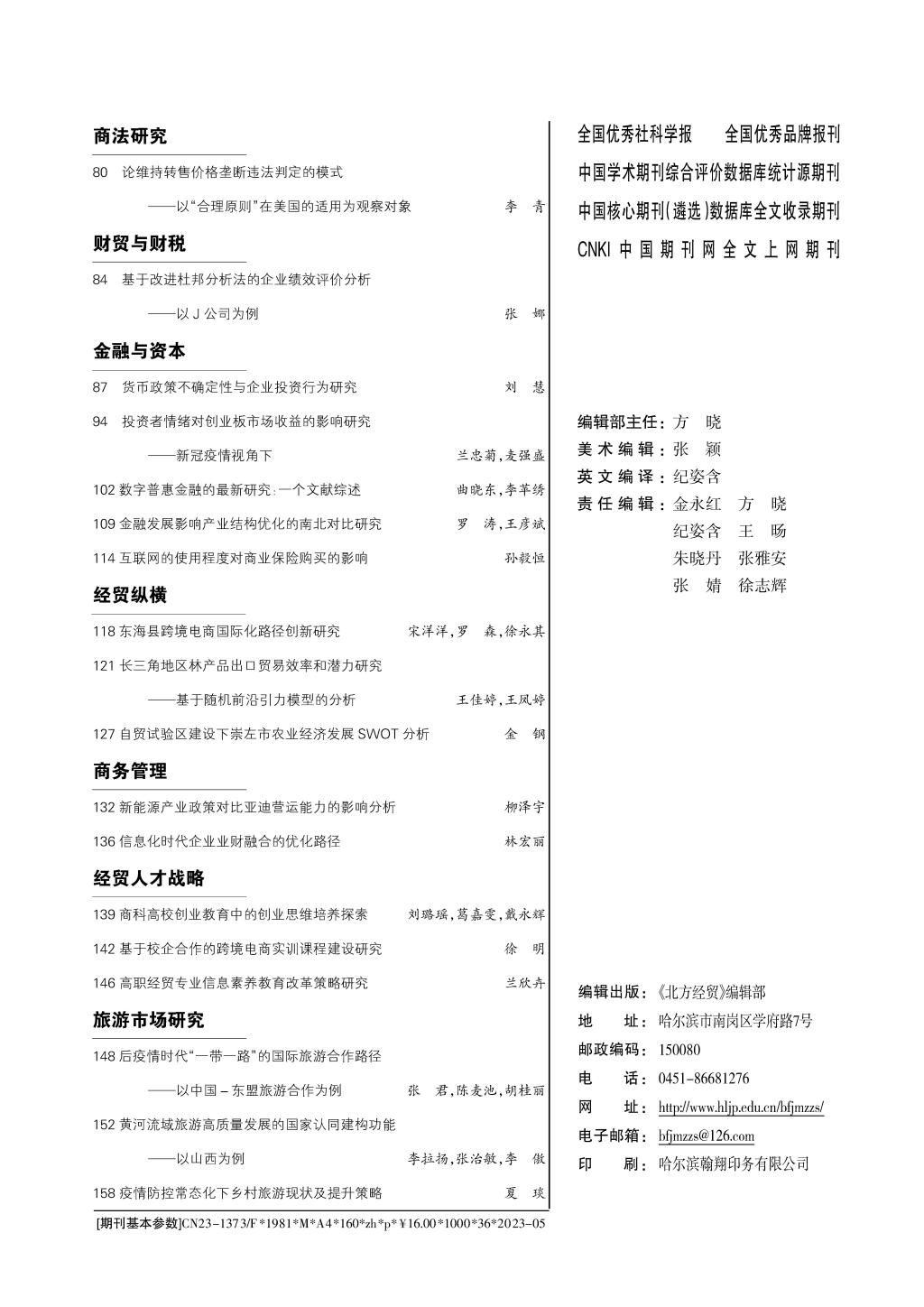 版权所有:北方经贸杂志社 地址:黑龙江省哈尔滨市南岗区学府路5号 邮编150080 电话:0451-86681276 86646778 邮箱:bfjmzzs@126.com
