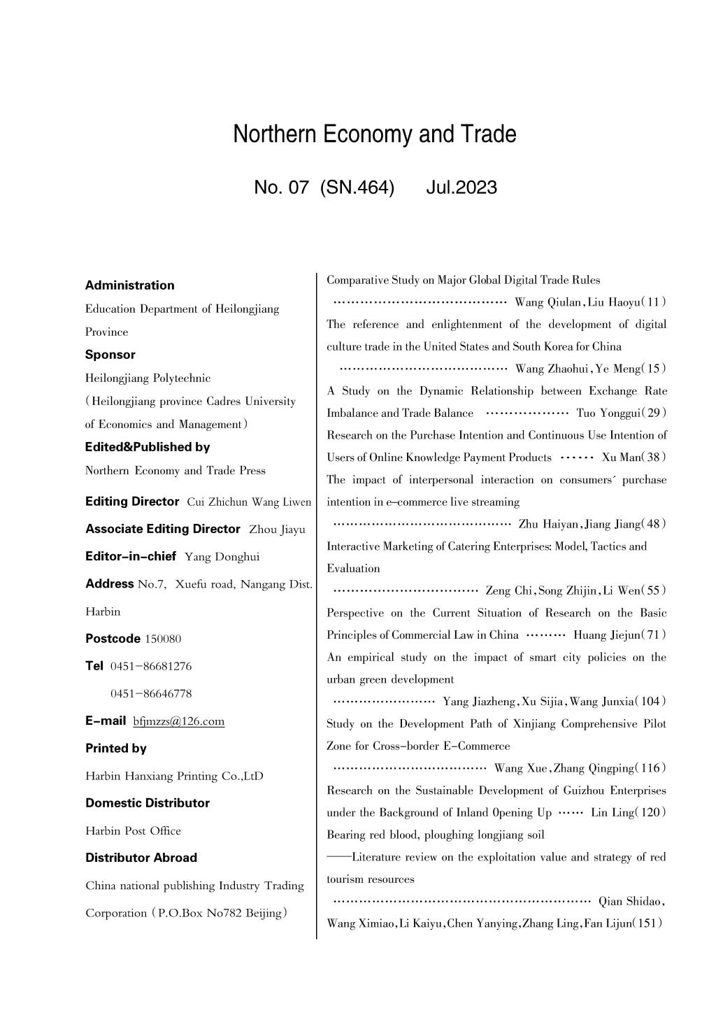 《北方经贸》2023年七月刊