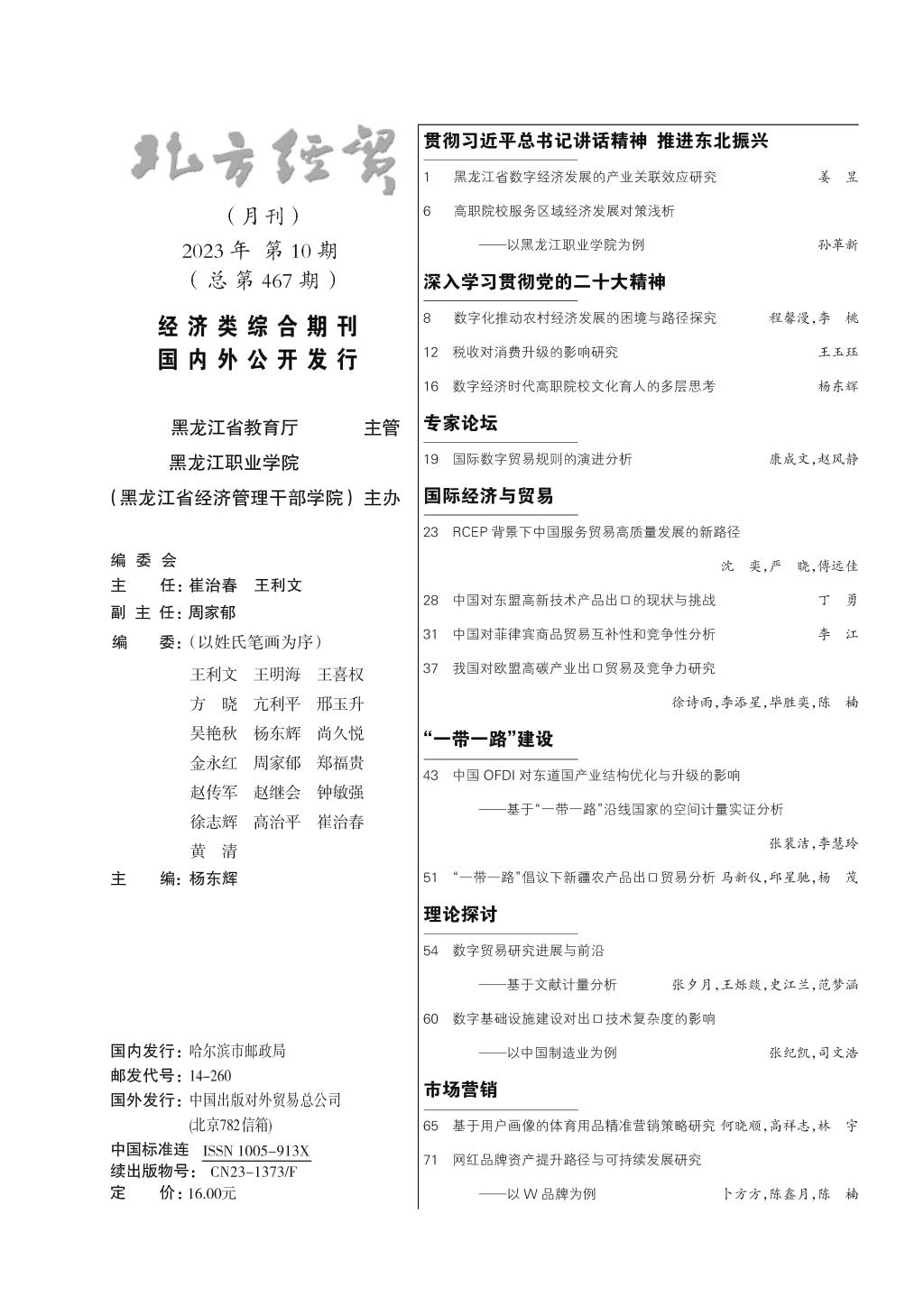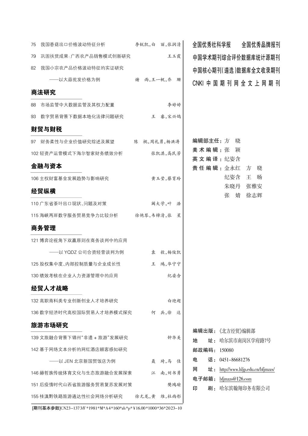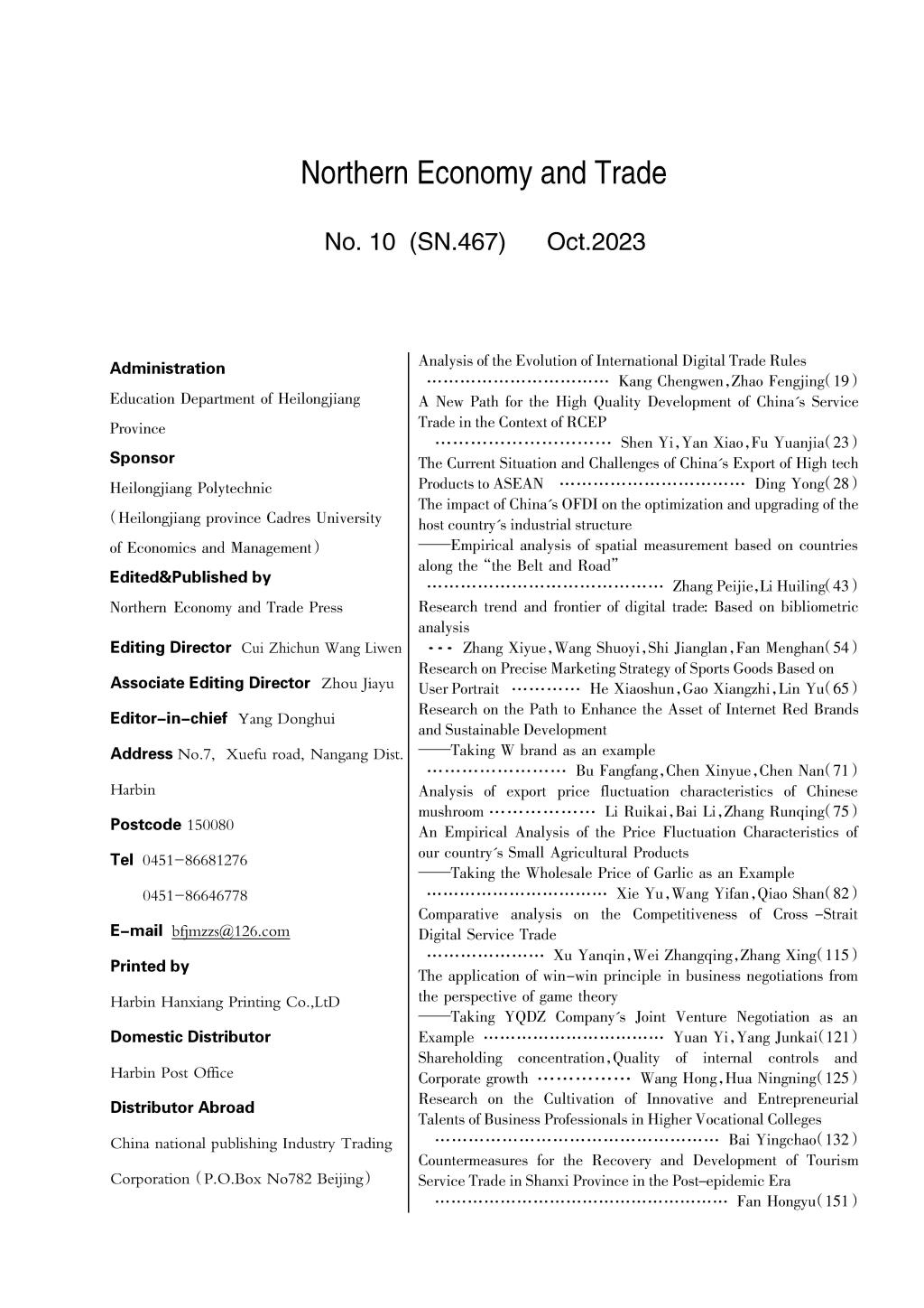 版权所有:北方经贸杂志社 地址:黑龙江省哈尔滨市南岗区学府路5号 邮编150080 电话:0451-86681276 86646778 邮箱:bfjmzzs@126.com