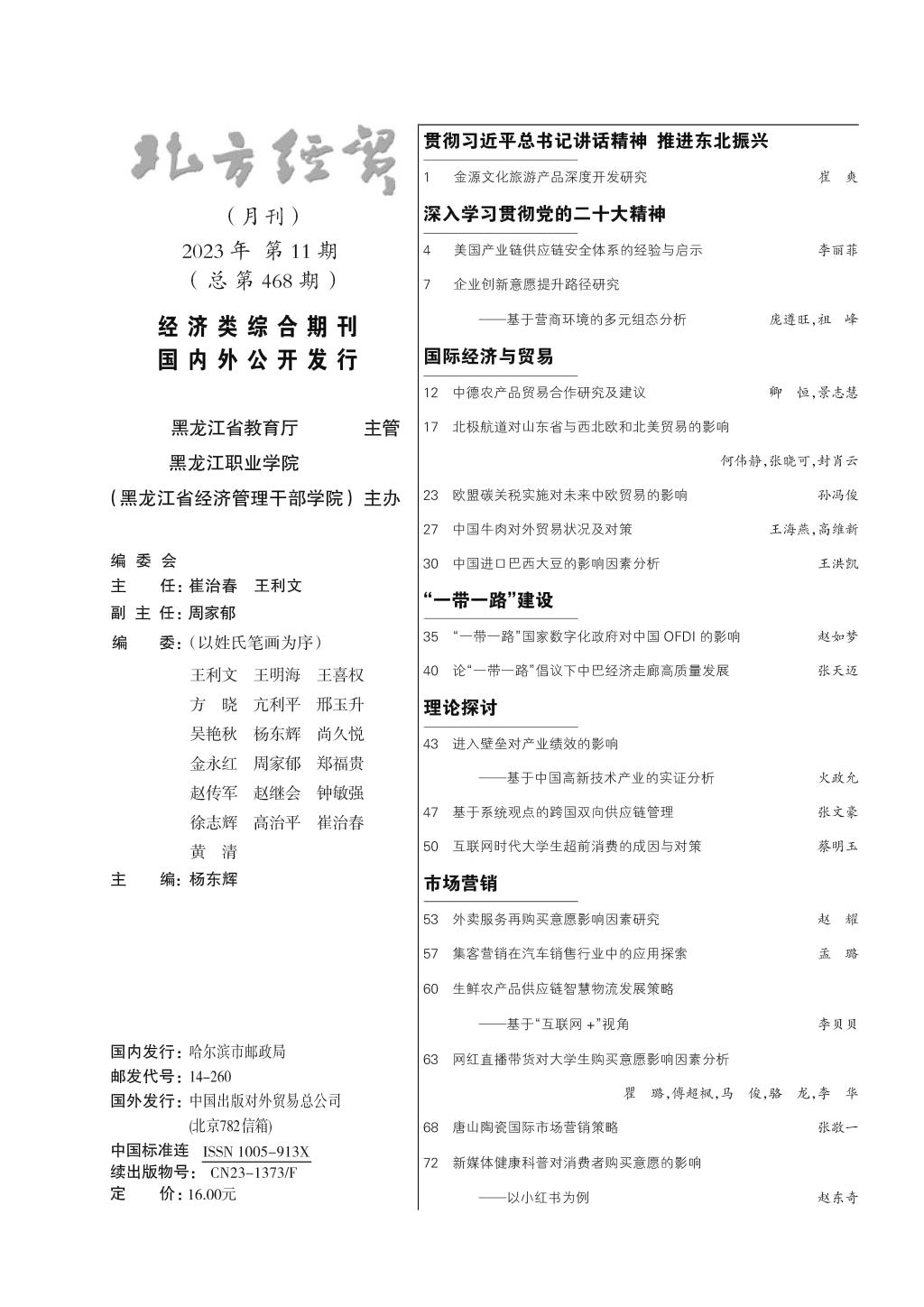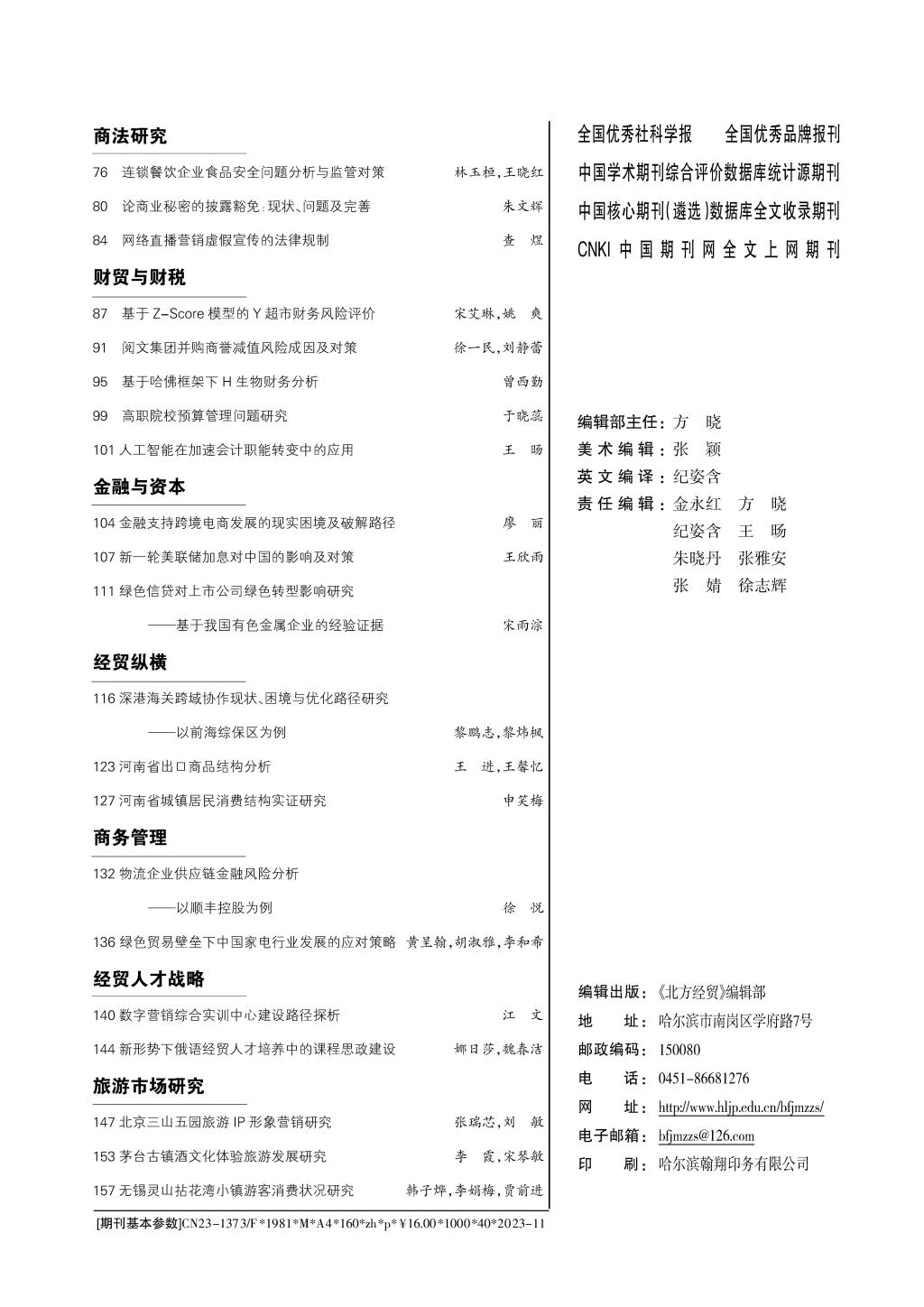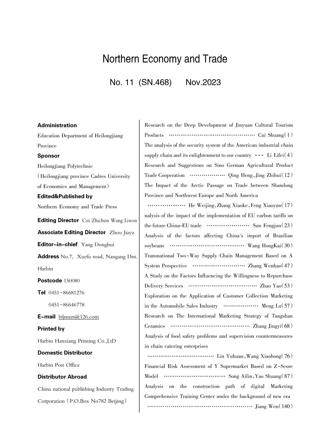 版权所有:北方经贸杂志社 地址:黑龙江省哈尔滨市南岗区学府路5号 邮编150080 电话:0451-86681276 86646778 邮箱:bfjmzzs@126.com