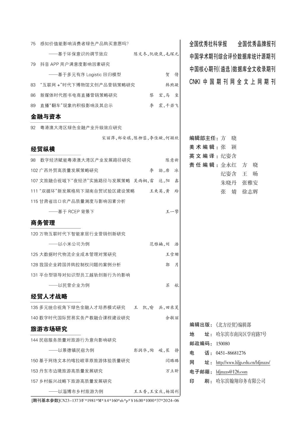 版权所有:北方经贸杂志社 地址:黑龙江省哈尔滨市南岗区学府路5号 邮编150080 电话:0451-86681276 86646778 邮箱:bfjmzzs@126.com