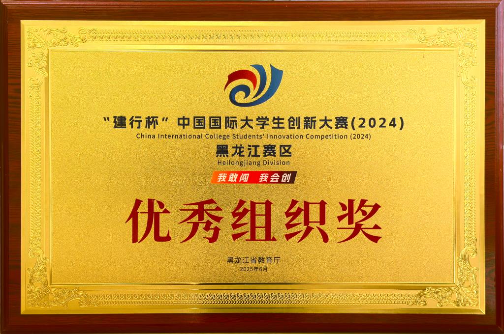 ▲学校荣获建行杯”中国国际大学生创新大赛(2024)黑龙江赛区“优秀组织奖”和“团体优胜奖”