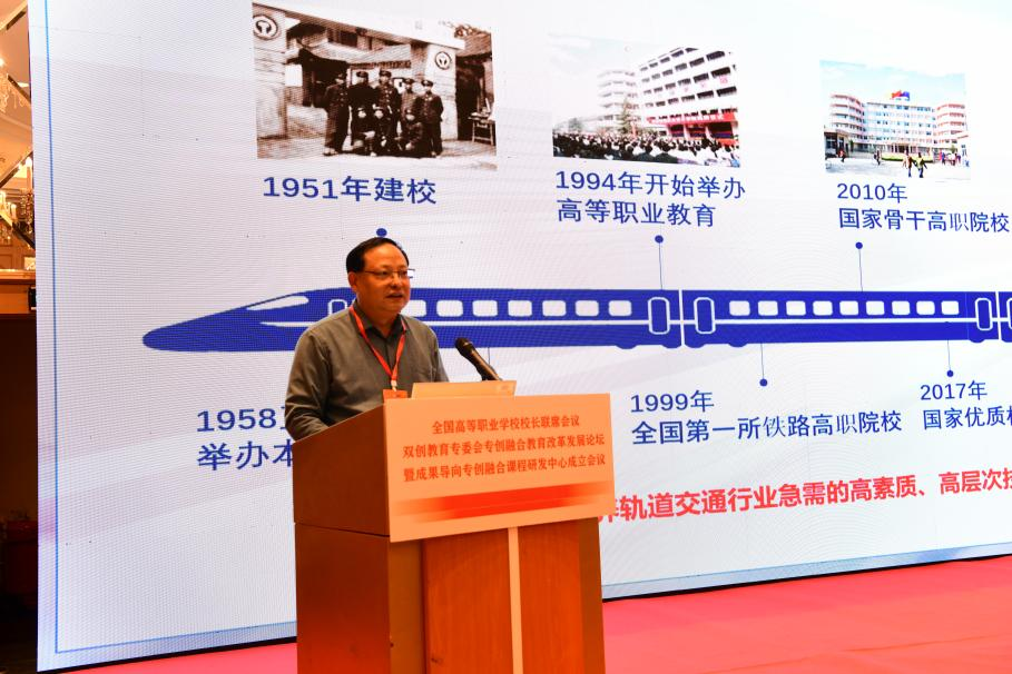 ▲郑州铁路职业技术学院副校长李福胜做院校典型经验分享