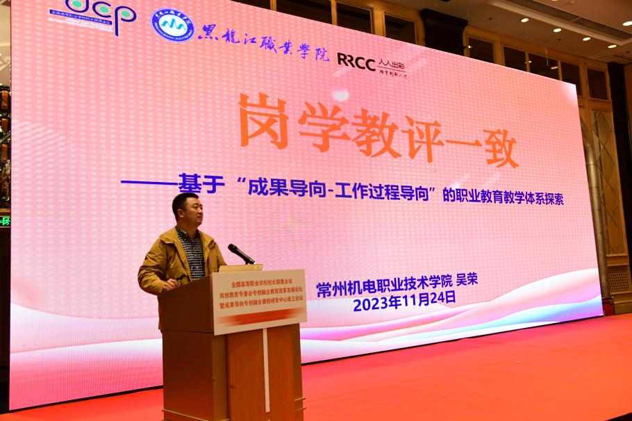 黑龙江省教育厅二级巡视员丁哲学在致辞中代表教育厅对来访嘉宾表示热烈欢迎。他指出,成果导向教育倡导以学生为中心,重视学生个性发展,扩展成功学习机会,强调学生个人的进步表现和学业成就。黑龙江职业学院自2014年开始成果导向本土化改革、本地化实践、本体化认识的历程,形成了“成果导向+行动学习”的课程建设模式,在国内高校引发了广泛关注。在“双创”教育的推动下,专业教育与创新创业教育的有机融合带来了教育模式的变革。通过基于成果导向的专创融合课程研发,推进专创融合课程标准与示范课程建设,职业院校可以更好地提升人才培养质量,从而服务国家创新发展,推动地方经济实现跨越式发展。