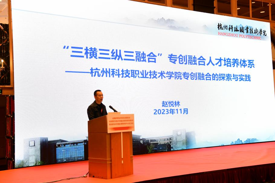 ▲杭州科技职业技术学院副校长赵悦林做院校典型经验分享