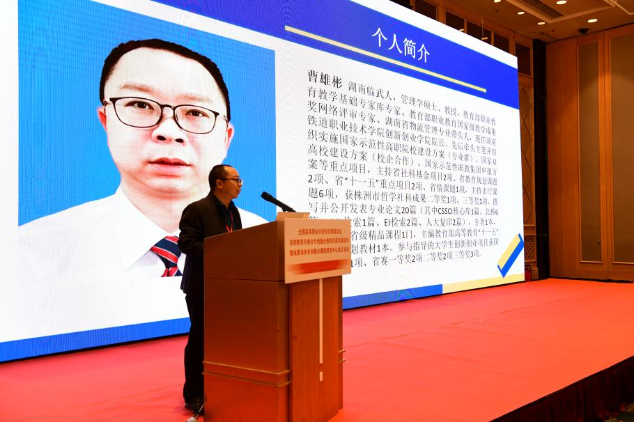▲湖南铁道职业技术学院双创学院院长曹雄彬做院校典型经验分享