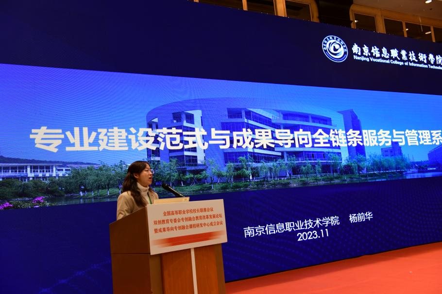 ▲南京信息职业技术学院教务处处长杨前华做院校典型经验分享