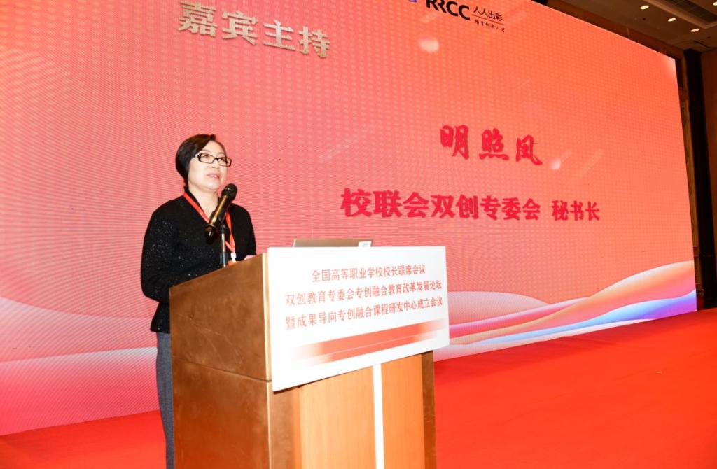 ▲校联会双创教育专委会秘书长明照凤主持课程研发中心成立仪式