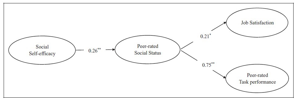 员工社交自我效能感与工作结果的关系:社会地位的中介作用