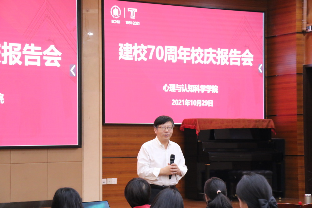 2021年10月29日,在普陀校区俊秀楼223学术报告厅,心理与认知科学学院举办“建校70周年校庆学术报告会”。心理与认知科学学院名誉院长周晓林,副院长郝宁,紫江青年学者高晓雪、尹大志,副教授黄楚中、陈中廷、胡杨、王一集,明园晨晖学者梁一鸣、周晗昱等老师出席,100余位师生参加了报告会。报告会由陈中廷、尹大志主持。