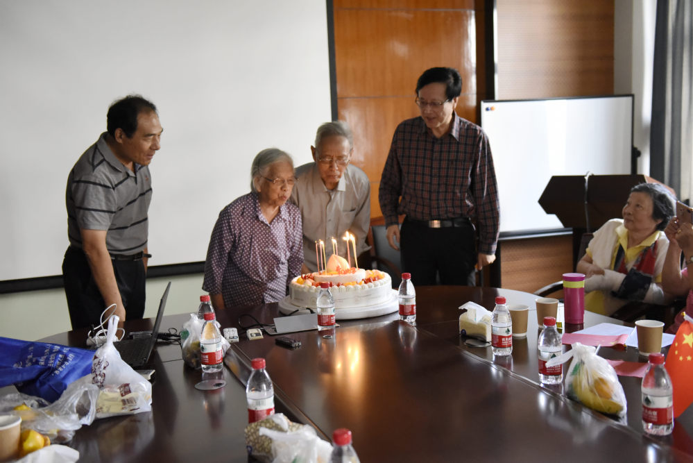 本次活动,学院特别为今年“逢五逢十”生日的老教师准备了生日蛋糕。在师生同唱生日歌中,李名英、缪小春、陈国鹏、屠荣生四位老师共同吹灭了生日蜡烛。