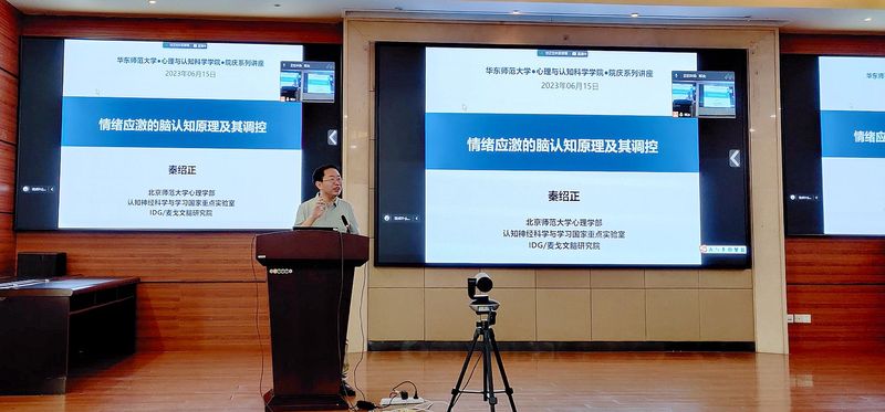2023年6月15日下午,我院在俊秀楼223报告厅举办建院十五周年系列讲座,特邀北京师范大学认知神经科学与学习国家重点实验室秦绍正教授作题为“情绪应激的脑认知原理及其调控”的学术报告。报告由紫江青年学者罗艺研究员主持,相关领域的青年教师、研究生和本科生积极地参加了本次线下报告会。