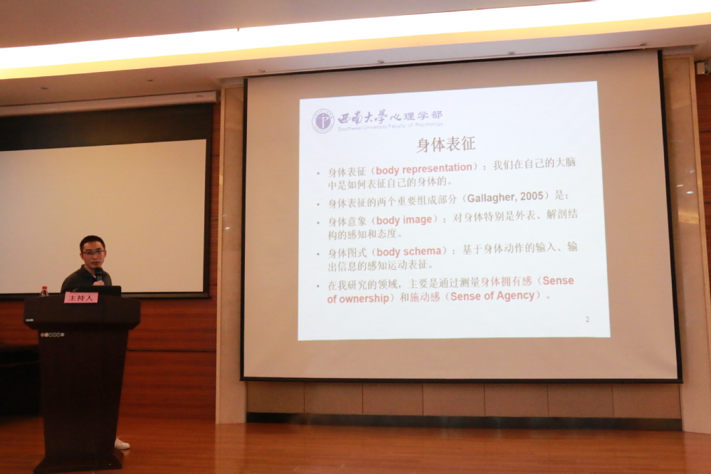 西南大学心理学部麻珂副教授报告了“使用虚拟现实技术研究身体表征”的相关内容,介绍了研究身体表征的实验范式,研究的两个大方向:在什么条件下我会认为这是我身体的一部分以及对虚拟身体的感知、互动和交互如何影响人们的认知和态度。此外,麻珂副教授还介绍了虚拟橡胶手实验,简易版虚拟手错觉,试脸错觉,虚拟全身错觉等实验内容。提出了这项研究主要可以应用于种族偏见。