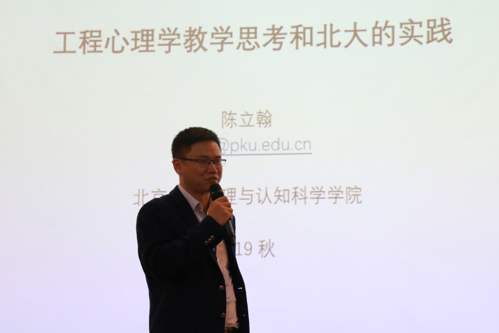 下午第二个工作坊主题为“工程心理学教学研讨与课程建设”。北京大学心理与认知科学学院陈立翰副教授带来了“工程心理学教学思考和北大的实践”相关报告,介绍了北京大学近两年来《工程心理学》课程的教学实践,举例面向专业硕士的学生核心能力的培养举措,探讨了在新形势下《工程心理学》的传统教学模块的内涵和取舍、以及简介本课程在北大教学和科研所面临的挑战。