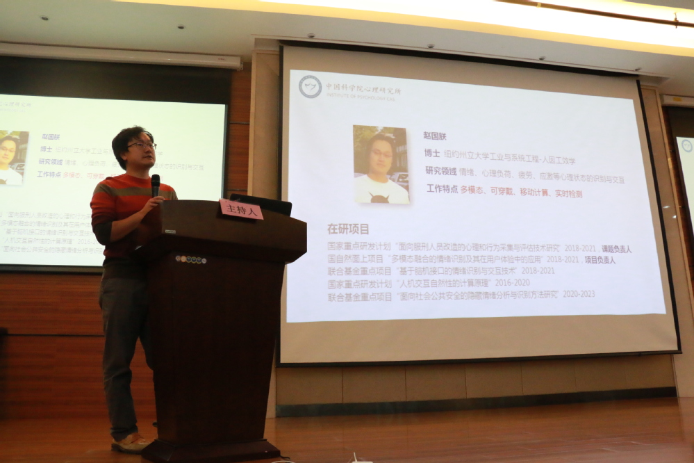 中科院心理所赵国朕副研究员报告了“基于脑电的情感计算方法”,阐述了该方法的分析用户外部心理行为、识别相应的情绪状态和做出自然友好的反应三个方面的流程、脑电指标体系等,情绪视频数据库也促进了对于情感的重视和深入研究。